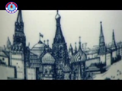 この花瓶は、ロシアで有名な陶磁器工場で作ったものです。贈り物の表面には、ロシアのシンボルである「クレムリン城」が描かれ、色々な花も飾られています。