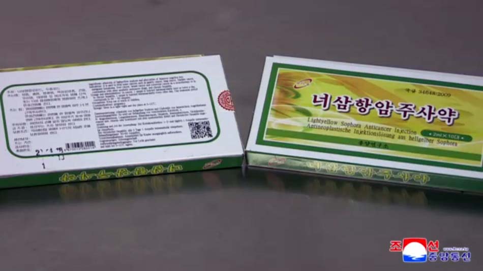 研究所の人たちは、ガマの分泌物ときばなおうぎでつくった抗癌注射薬、オクシマトリン注射薬、エゾウコギ免疫復活注射薬、大豆アミン注射薬などいろいろな薬物を開発しました。これらの薬物は、朝鮮人民の体質に合い、嘔吐、脱毛、食欲不振などの副作用がまったく無く、治療効果が高いといいます。