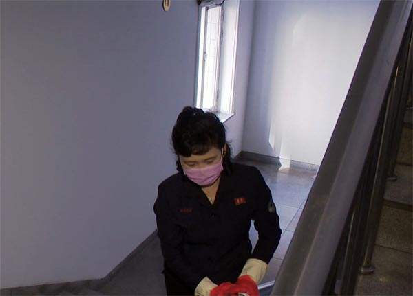 ピョンヤンのソソン区域*1人民病院の医療従事者は、防疫学の要求を厳格に守っています。特に、来院患者が手の消毒と手洗いなど防疫規定を遵守するようにしています。