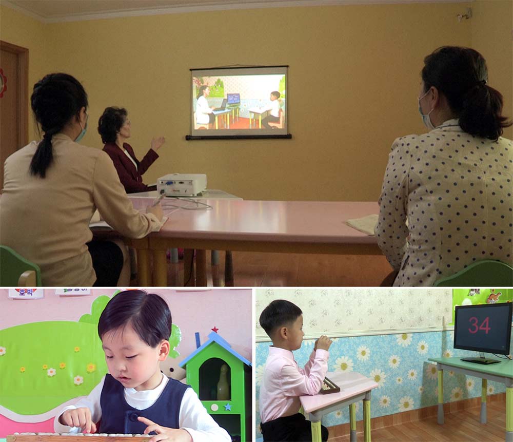 「私たちは音楽の才能のある園児たちにピアノを弾きながら、もしくは歌を歌いながらソロバンをイメージングして足し算や引き算をすることを試しています」