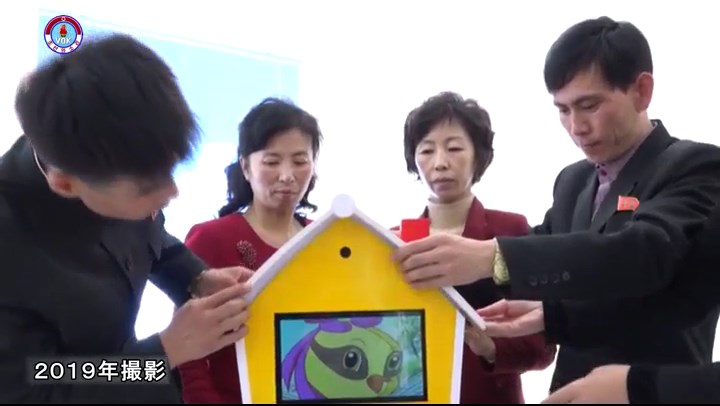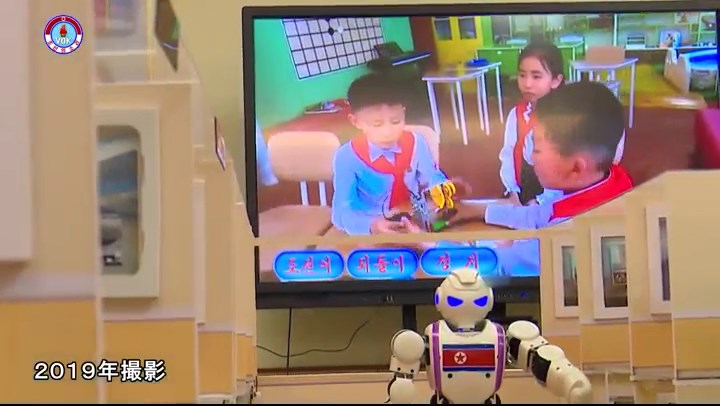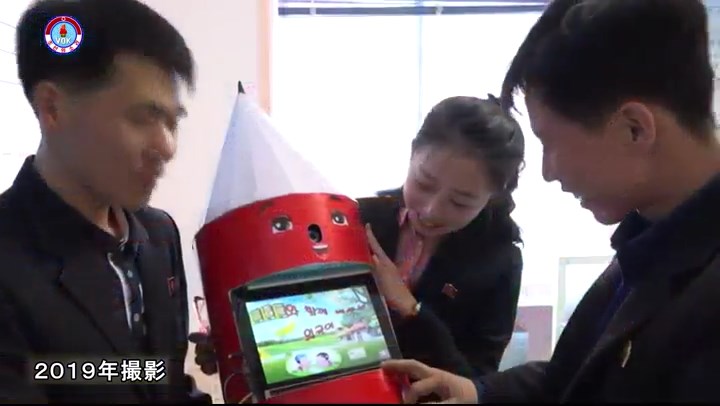 幼稚園児と小学生の為の教育用ロボットです。AI技術が取り入れられたこのロボットは平壌教員大学で開発しました。大学ではこれまで幼稚園・小学校で利用する色々な教育用ロボットを開発しています。