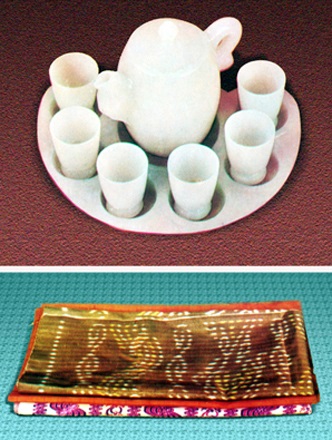 硬玉のティーカップセットと高級布地は、チュチェ66(1977)年9月、当時のビルマ連邦社会主義共和国のウ・ネ・ウィン大統領から偉大な金日成主席に贈られたものです。