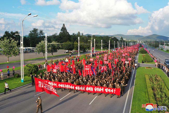 金正恩委員長の公開書簡を受け止め、首都の党員師団が組織され、被災地に急派されました。首都の精鋭な党員師団の急派、単なる被害復旧のためではありませんでした。一石二鳥でなく一石多鳥と言う奇跡を生み出そうとの委員長の卓越した導きは、被災地の住民に幸福とピョンヤンの文明をもたらし、党と人民の血の通った関係は不可分のものにしっかり打ち固められました。被災地があらゆる古いものを取り払って社会主義の理想郷となり、助け導き合う集団主義の美風が国風となりました。朝鮮人民は一層強くなり、偉大な人民となりました。