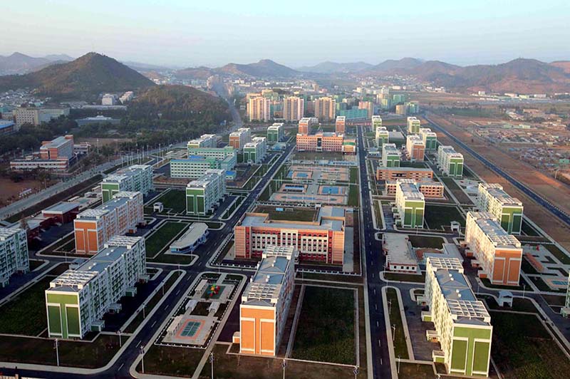 ピョンヤンのミレ科学者通り*1には文字通り、科学者と教育者が住んでいます。数千世帯の住宅と150余りのサービス施設があるこのニュータウンは敬愛する金正恩総書記の発案と精力的な導きによって建てられました。ミレ科学者通りと言う名も総書記が直々付けたものです。