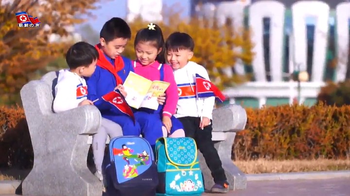 ミンドーレ*2・ラベルのノートとソナム*3・ブランドのランドセル、ヘバラギ*4という学用品、子供達が着ている制服、これら全てに苦労をものともせず子供達の笑いの為に尽くしている金正恩総書記の配慮が宿っています。