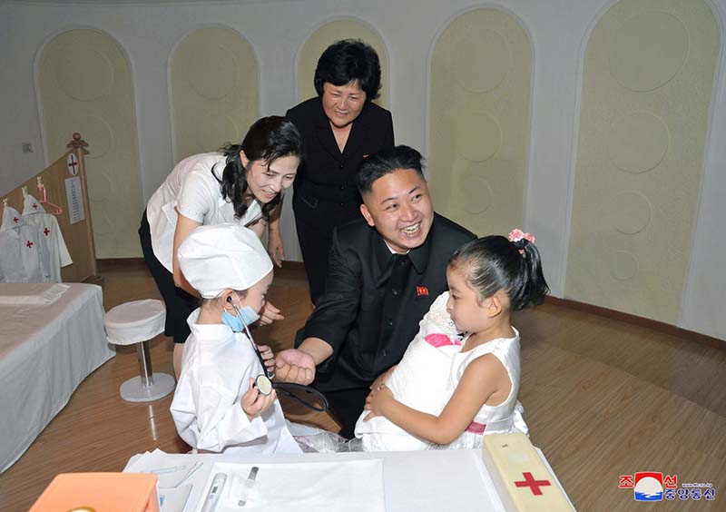 総書記は、楽しく遊んでいる子供たちのかわいい姿を見て、長い時間を送りました。お医者ごっこをする子に直々診てもらったりもし、重量挙げの運動をする子供たちを見ては将軍のようだと言って大きく笑いました。子供たちの芸術公演を見るときは、一番先に拍手しました。