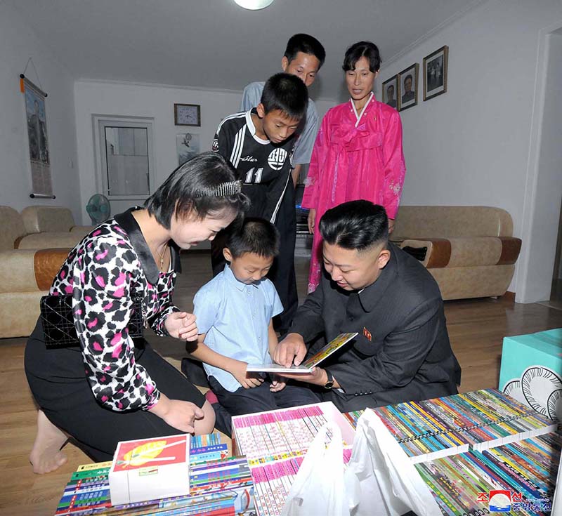 キョンサン幼稚園だけではありません。新居入りした労働者の家を訪ねては、その家の幼い息子に絵描きの方法を一つ一つ教え、島の村に行っては、満1歳を迎える将校の息子にプレゼントもしました。また、よいことをした誇りをしたためた子供の手紙に赤い星を五つも描いて送り、人民野外スケート場でスケートを楽しむ子供たちと一緒に写真も撮りました。