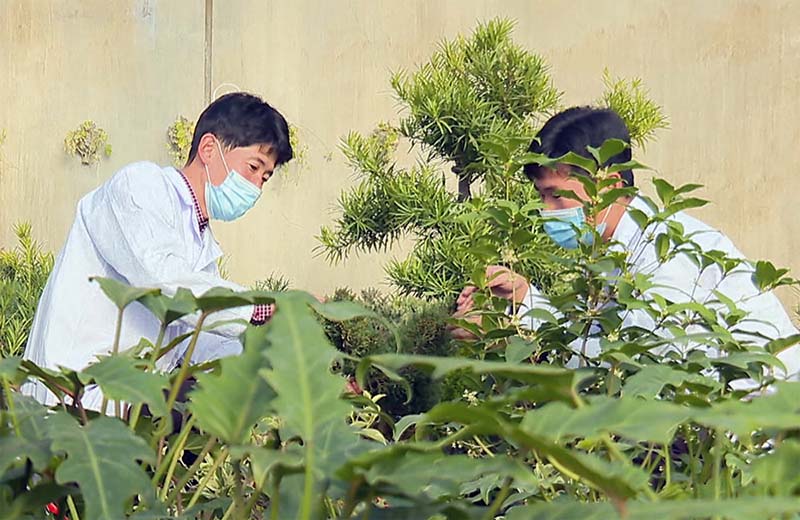 近年、研究所では多様な植物彫刻と色の鮮やかな木々を混ぜ合わせた栽培方法を出して、ピョンヤンの園芸造成に少なからず寄与しました。