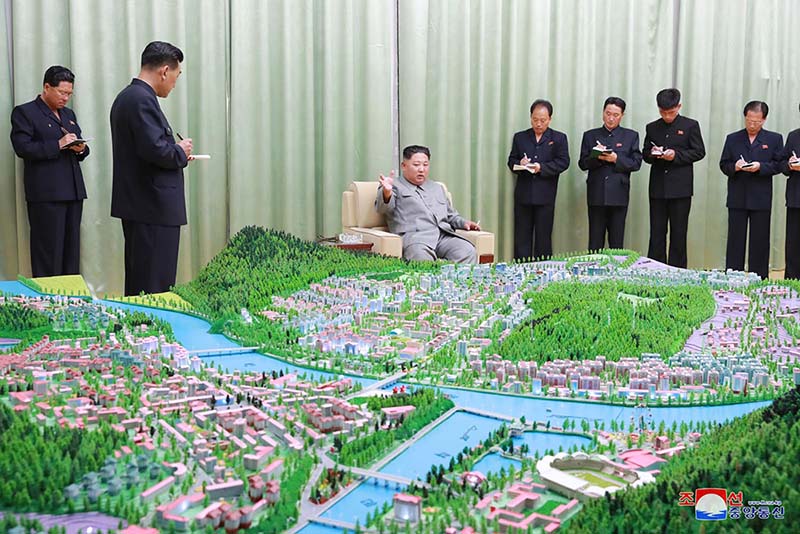 チュチェ108(2019)年5月30日、敬愛する金正恩総書記はチャガン道*1のカンゲ市*2とマンポ市*3の建設総計画図と都市建設のミニチュアを見ました。総書記はカンゲ市とマンポ市を現代感覚に合わせて建設することにより、地方都市の姿を抜本から一新する構想を練っていました。