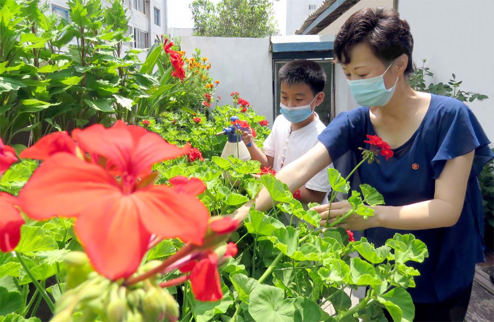 じかに育てたいろいろな品種の花の種を同じ居住人民班の人たちにも分けてやり、街にも植えていますが、それで花の家のおばあさんと親しく呼ばれています。キム・ブガンさんもおばあさんに劣らず、大変な熱意を示していますが、学校にも多くの花の木を植えたとのことです。
