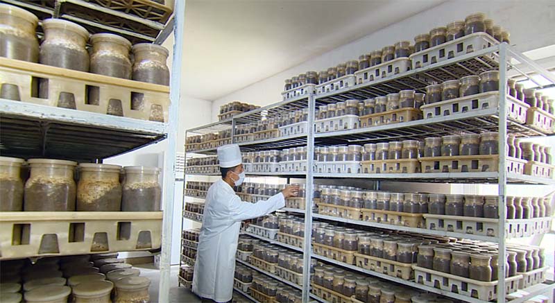 工場では科学技術普及室を着実に運営して従業員のスキルアップをはかり、周辺の農場にふんだんにある原料で基質を賄って、茸の増産を可能にしました。技術準備室では、各工程の検査をきちんと行って、コストダウンをはかっています。