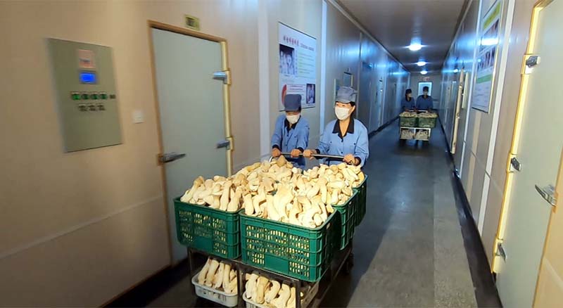 「工場では、これまで平茸と共に生産性と栄養価の高い茸を栽培して、ピョンヤン市内の各所に200トン以上の茸を供給しました。最近は品種の選択に主眼を置き、自らの技術力で新種を育種しました」