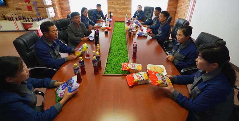 美味しいという答えに総書記は、この工場で生産したブルーベリー製品の味がよいというが、製品の評価は人民から受けるべきだと言いました。