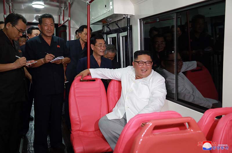 チュチェ107(2018)年8月3日、敬愛する金正恩総書記が新型の路面電車を見たときのことです。この日、金正恩総書記は、われわれの労働者が自分の力と技術で路面電車を造ったとの報告を受けて現地に赴きました。ピョンヤン市民の交通問題の解決のために常に心を砕いた総書記でした。