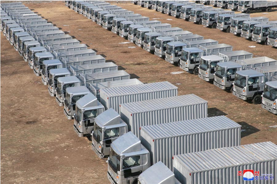 金正恩委員長の信頼を胸に、企業所の労働者は朝鮮労働党第8回大会を輝かしい勤労の成果で迎えるため、トラックの生産に励んでいます。