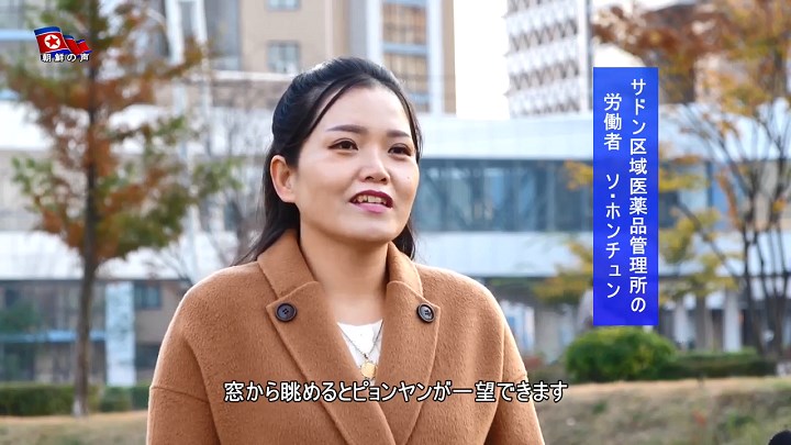 「窓から眺めるとピョンヤンが一望できます。近年だけでも、ファソン通り、チョンウィ通りなど立派な建築が林立しました。どれもが人民のためのものです。日増しに美しく変貌するピョンヤンを見て、素晴らしいこの制度のため、仕事にもっと精を出さなければ、と思っています」