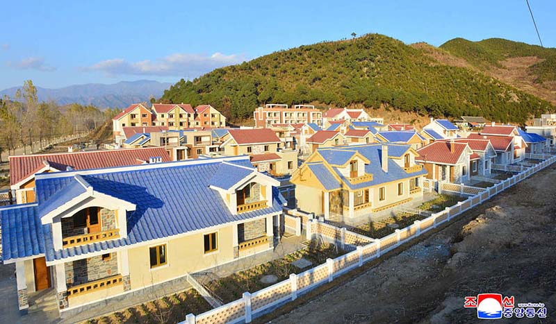 総書記の正しい指導により、国中の全ての市、郡では、近代文明が凝縮された農村住宅がその姿をはっきりと現しています。