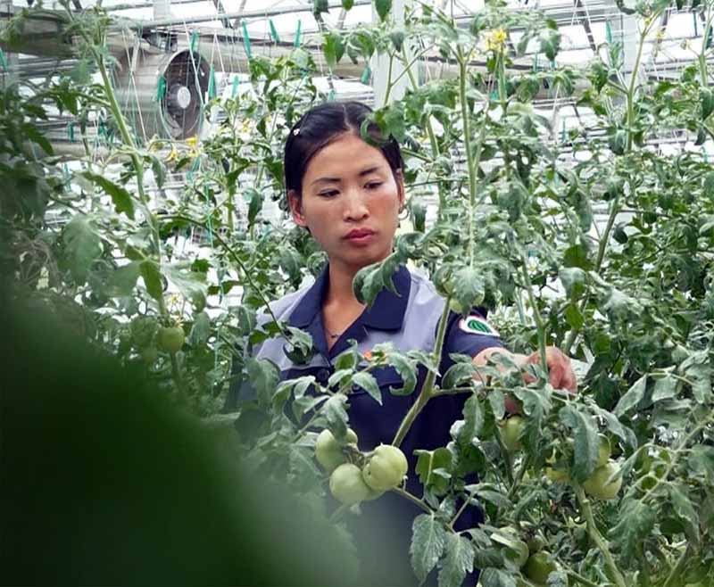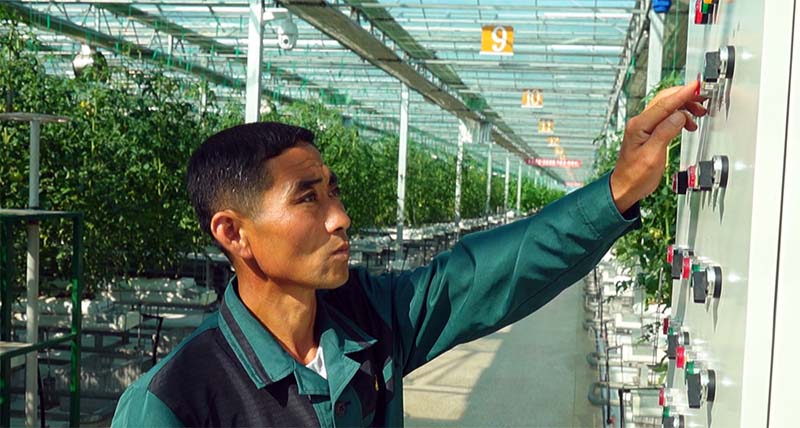 「竣工してからこの一年間、農場では多くのハウス野菜を生産しました。今年2月、初物の野菜を収穫してからこれまで、キュウリ、トマト、白菜、春菊、ホウレンソウをはじめ多くのハウス野菜を生産して、ハムフン市とチャンジン郡、プジョン郡などハムギョン南道の人たちに送りました」