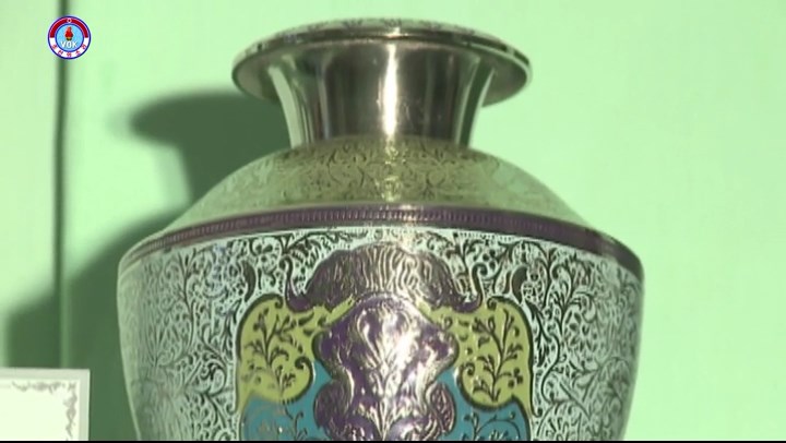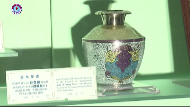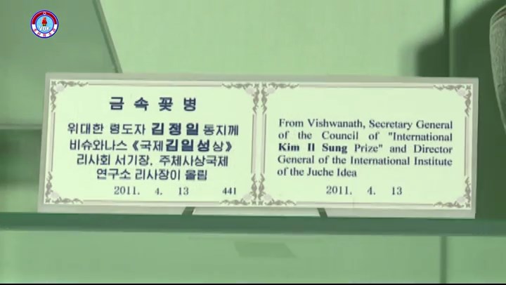 これは偉大な金正日総書記へチュチェ100年(2011)4月13日、国際金日成賞理事会書記長でチュチェ思想国際研究所理事長だったヴィシュワナス氏*1から贈られた金属製の花瓶です。
