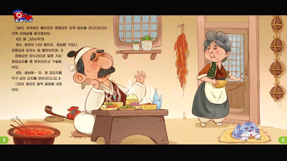 きまりわるくなったチョン爺さんは、二度と隣のキムチについて言えなくなりました。