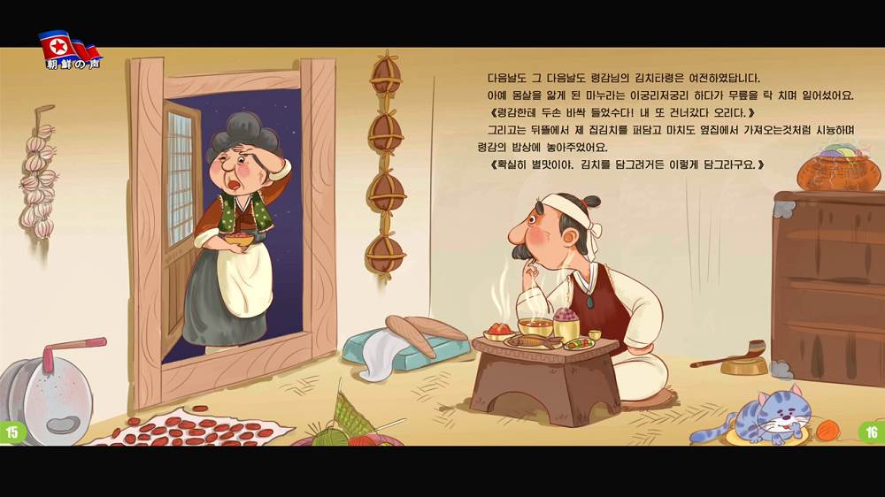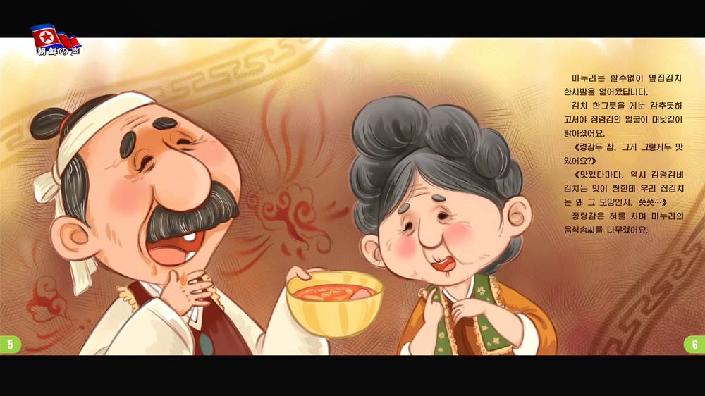 「婆さん、これ見な、キム爺さんのキムチは、見ただけでもよだれが出る、味も格別だ、形はまた絵のようだ・・・」