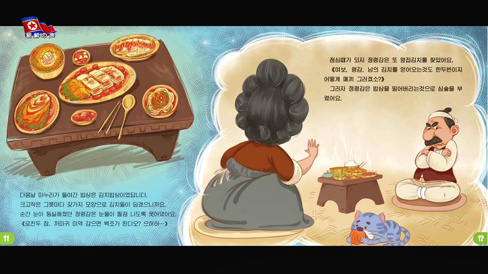 爺さんが残した隣のキムチのひときれを口にした婆さんは、首をかしげ、自分のキムチを隣に持っていきました。