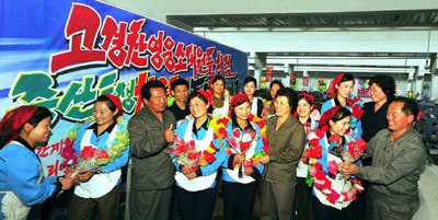 金正淑ピョンヤン紡織工場の労働者がマンリマ先駆者大会を輝かしい勤労の成果で迎える一念で集団的飛躍を起こし、生産計画を上回って達成しています。