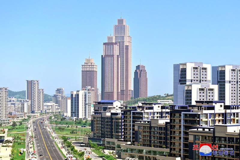 チョンウィ通りはこの5月14日に竣工しました。竣工を10日後に控えた5月4日、現地で異彩を放つ結婚式がありました。ペクトゥ山英雄青年建設チームの制服を着た新婚夫婦、二人はチョンウィ通りの建設者、みなが心から祝ってあげました。