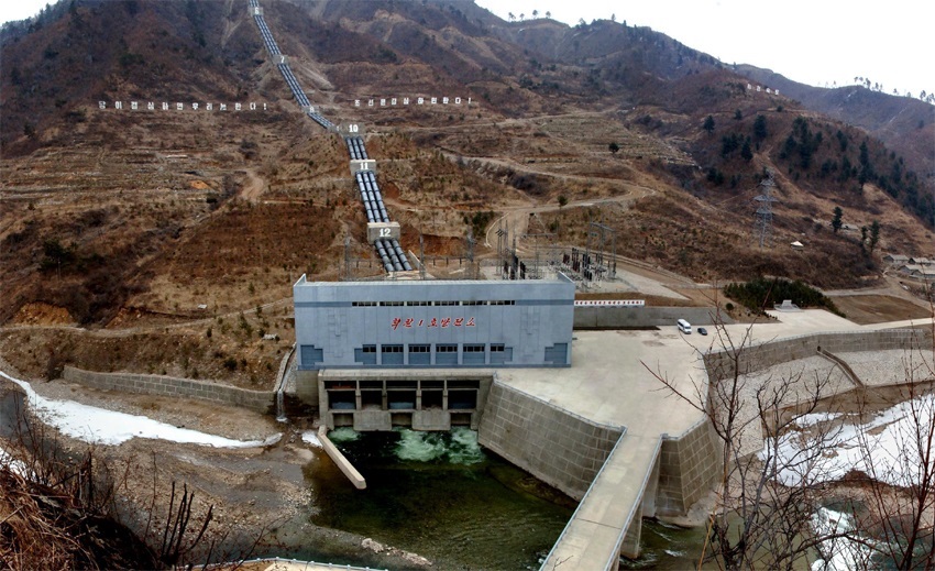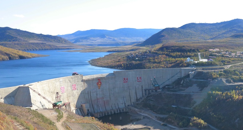 「青年たちが今も忘れずに心に刻む焚き火があります。金正日総書記は大規模なヒチョン発電所*1の建設を発案し、建設者もまだ着いていないヒチョンの原生林に一番先に赴き、開拓の初の足跡を印しました。その後、数回もヒチョン発電所の建設現場を訪れ、岩の割れ目から水が流れ出る水路トンネルにまで入って建設者を励まし、1日も早く発電所を完工するよう導きました。総書記のその愛国献身の足跡をたどり、発電所の建設者は昼夜を分かたず、奇跡のような偉勲を立てました。その日々、青春の胸に燃え上がる情熱の炎のように焚き火は燃え続きました」
