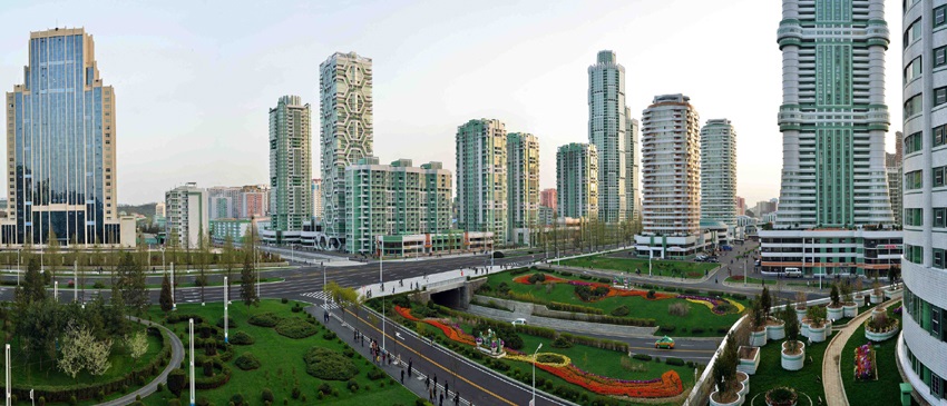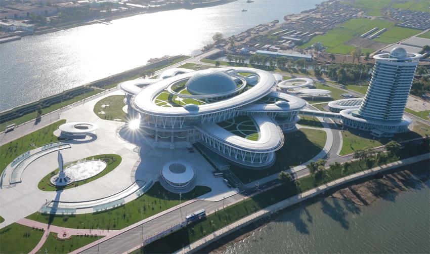富み栄える明日に向かって力強く進んでいる朝鮮の青年たちの歌声が響き渡ります。