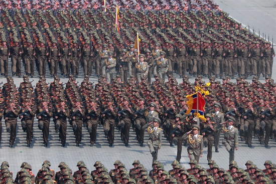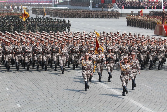 金日成主席が創建し、金正日総書記が生涯を通して無敵の軍隊に育てた朝鮮の革命武力は今、敬愛する最高司令官金正恩元帥の導きの下、百戦百勝の強兵の威容を高く轟かせています。