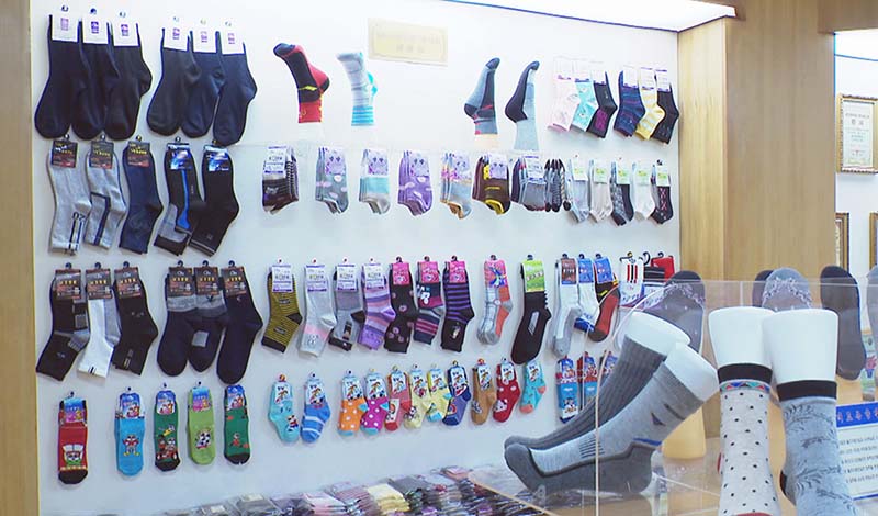 今、工場では季節と年齢、男女の好みに合う様々な靴下が生産されています。
