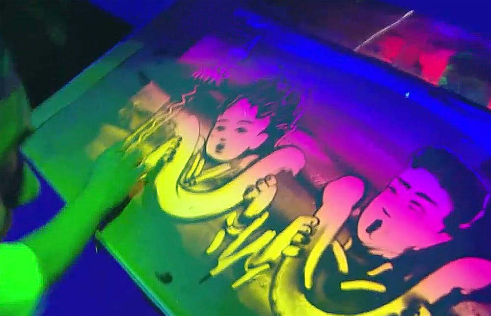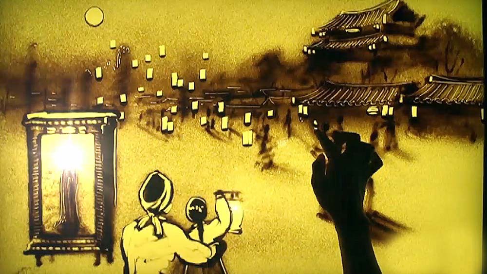 このジャンルは、音楽に合わせてガラスの上に砂で描き出す絵をカメラとプロジェクタ-でスクリーンに映し、リアルな絵を作り出す舞台芸術の一ジャンルです。音楽に合わせて美術家の巧みな手さばきで、他の美術作品とは比べようもない不思議な視覚的、聴覚的感興を沸かせます。