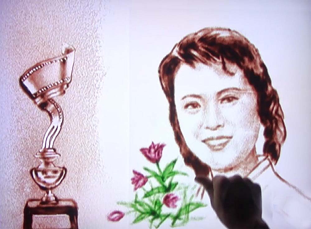 ピョンヤンにある美術アトリエセンターのマンスデ創作社に、砂絵の専門チームがあります。音楽と砂絵、