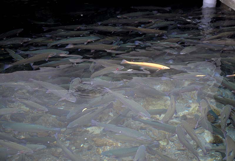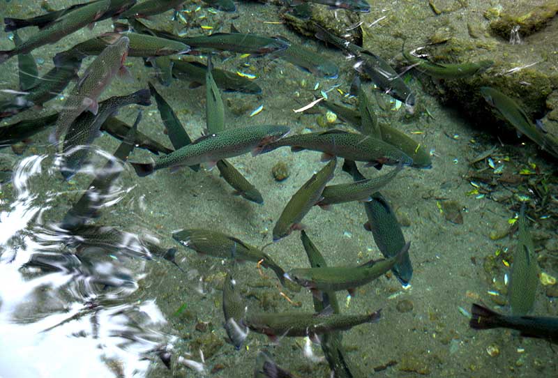 「満ち足りた気持ちで魚を眺めていた金正日国防委員長は、先日、シンチャン養殖場でチョウザメの群れが海に向かうと言ったが、ここクジャン養殖場では虹鱒は人民のところに向かうと言いたい、人民に一日も早くより多くの淡水魚を食べさせたい、人民が裕福で潤いのある生活ができるならそれに越したことはない、と言いました」