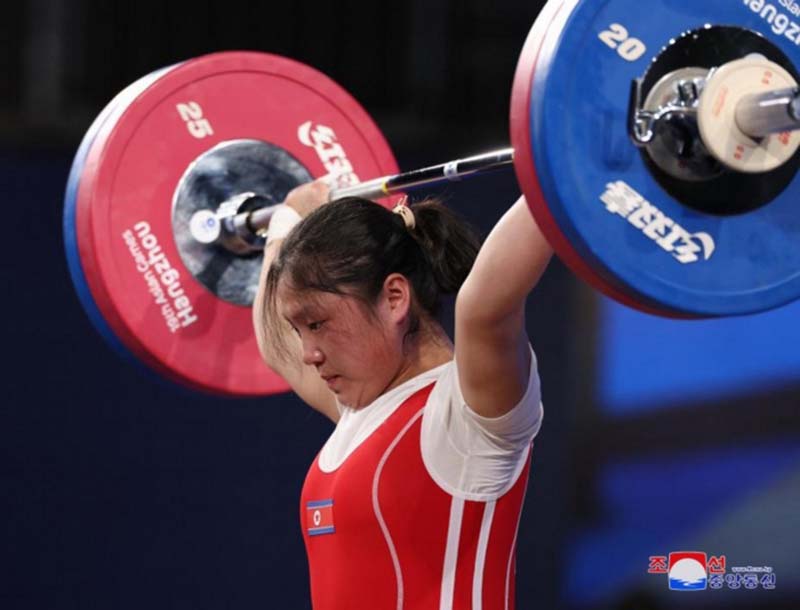 第19回アジア競技大会で朝鮮のウエートリフティング選手たちは6つの金メダルを獲得して、相変わらずウエートリフティングでの朝鮮の優勢を誇り示した。キム・イルギョン選手は女子ウエートリフティング59キロ級で金メダルを獲得した。