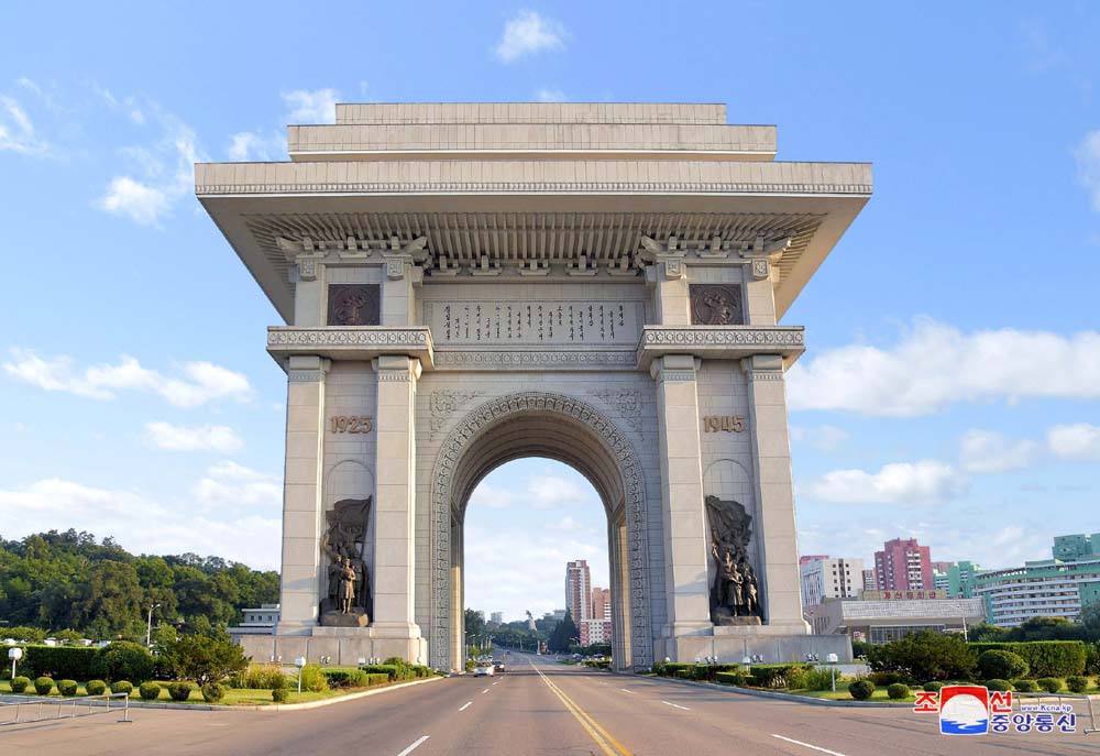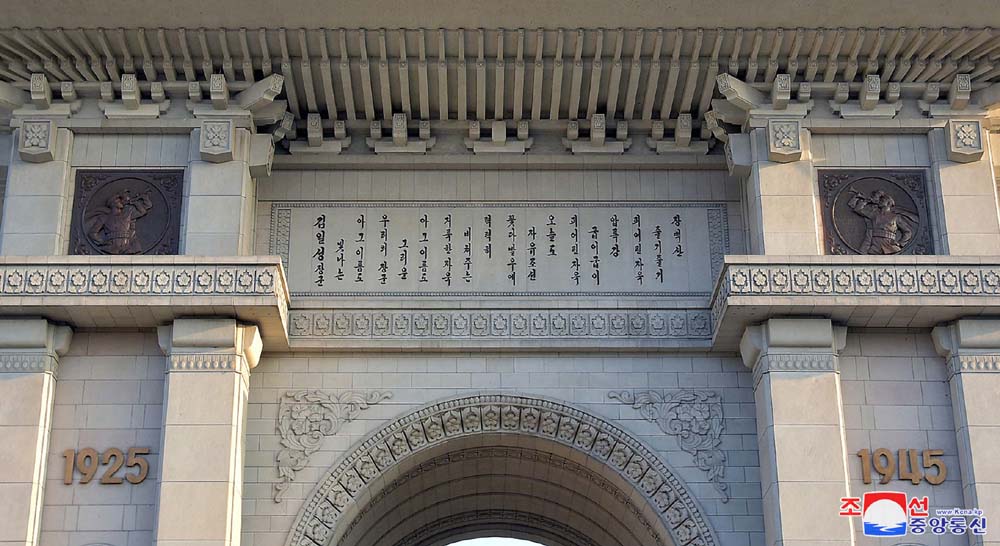ピョンヤンにある凱旋門です。偉大な金日成主席の朝鮮解放の業績を称える記念碑として建てられました。凱旋門の門柱に「1925」、「1945」と言う数字がついています。「1925」と言う数字は、金日成主席が革命の道に出で立った1925年を象徴しています。