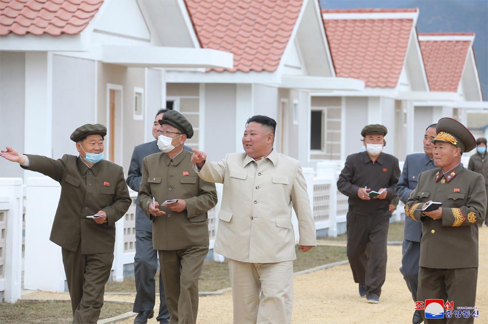 不幸にあった子のため、遠い道も一足に駆けつける母の思いで、金正恩委員長は危険を冒してぬかるみ道に車を走らせ、暴風消えやらぬ田んぼにも一番先に入りました。そして、人民の笑顔に喜びを感じて、被害復旧現場を次々と訪れました。その献身の指導によって、自然の猛威が襲い掛かった地域に幸せの住処、新しい村が出来ました。
