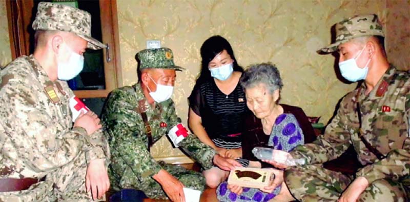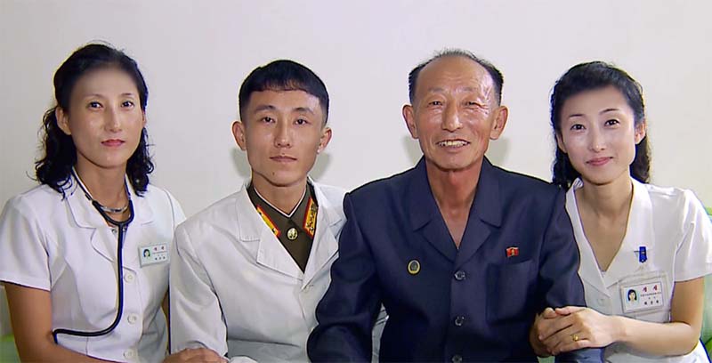 ピョンヤン市*1テドンガン区域*2のムンス第1という町*3に住んでいるチェ・ジャンスさんの家には、家宝のように大事にする一枚の記念写真があります。昨年8月、敬愛する金正恩総書記と共に撮った記念写真です。光栄に浴したその日、チェさんは一生涯、人民軍の軍医を勤めた日々のことが感慨深く思い起こされました。