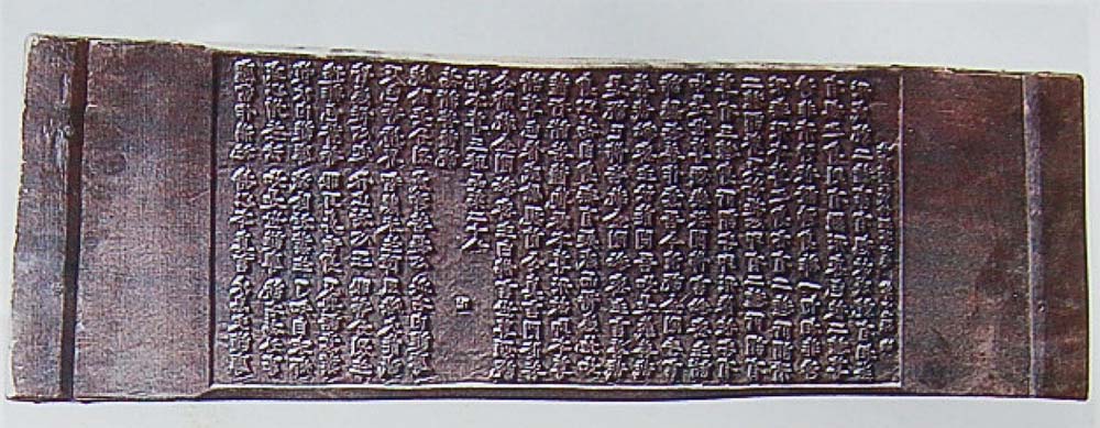 「8万大蔵経」の木版は、たぶの木とオノオレカンバ*1、シラカバで作りました。木版ひとつの長さは69.6センチメートル、幅は24センチメートル、厚さは3.7センチメートルです。木版ごとに22行があり、1行に14個の字が刻まれています。木版の両側にはよじれがないよう木を重ねて固定し、四隅には青銅の帯で庇いました。木版の表面には蝕まれないように漆塗りをしました。