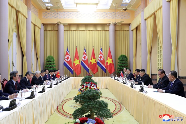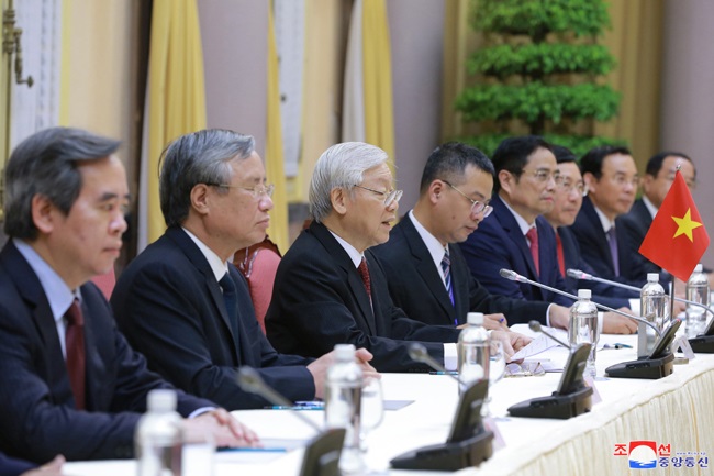 朝鮮労働党委員長で朝鮮民主主義人民共和国国務委員会委員長の金正恩元帥とベトナム共産党中央委員会書記長のベトナム社会主義共和国グエン・フー・チョン大統領との会談が3月1日、大統領府で行われました。