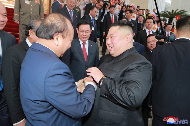 金正恩委員長はグエン・スアン・フック首相と暖かい挨拶を交わしました。