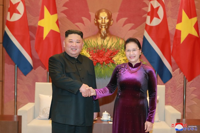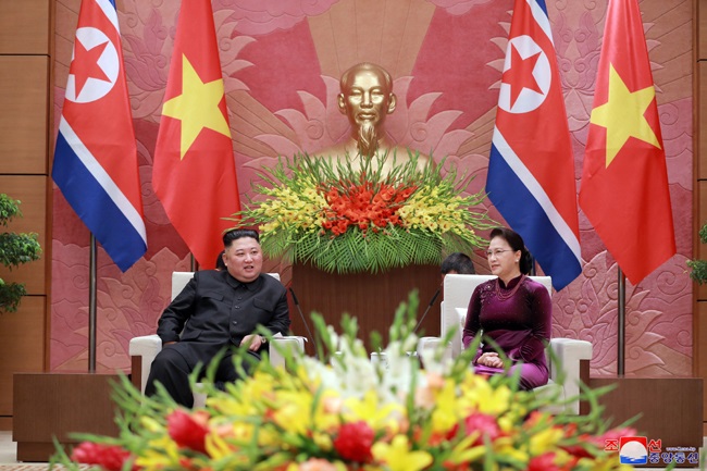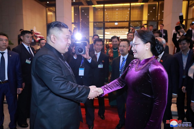 朝鮮労働党委員長で朝鮮民主主義人民共和国国務委員会委員長の労働党と国家、軍隊の最高指導者金正恩元帥が3月1日午後、ベトナム社会主義共和国人民会議グエン・ティ・キム・ガン議長に会いました。