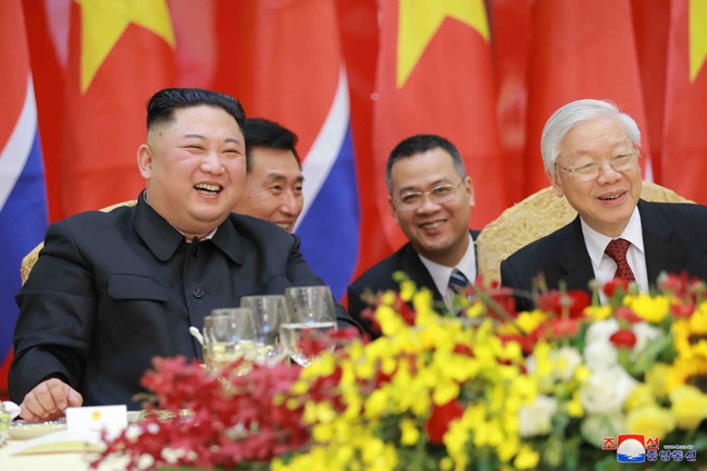 朝鮮労働党委員長で朝鮮民主主義人民共和国国務委員会委員長の労働党と国家、軍隊の最高指導者金正恩元帥のベトナム社会主義共和国訪問を祝ってベトナム共産党中央委員会書記長のベトナム社会主義共和国グエン・フー・チョン大統領が3月1日、国際会議センターで盛大な宴会を設けました。