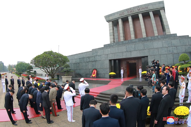 金正恩委員長はホーチミン廟に花輪をささげ、ホーチミン主席を追悼して黙祷をささげました。