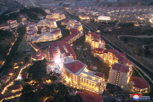 朝鮮労働党の人民愛によって世界的な温泉治療サービス施設、スポーツ・文化の憩いの場に見事に建設されたヤンドク温泉文化休養地の竣工式が12月7日、盛大に執り行われました。