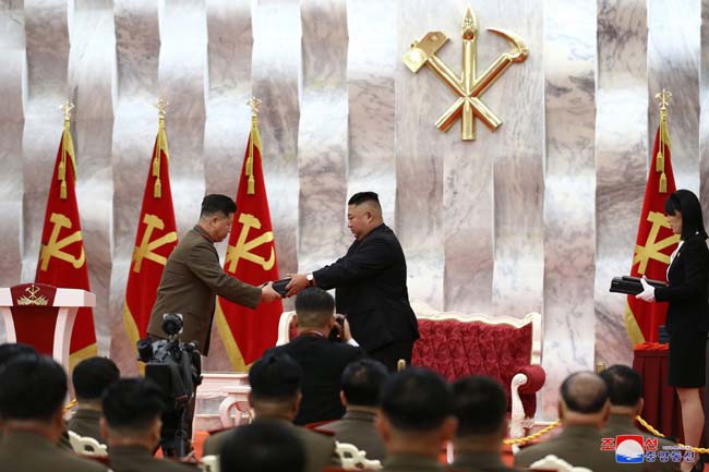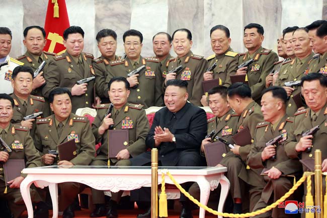 金正恩委員長は、共和国武力の主要指揮メンバーが党と革命、祖国と人民に担う気高い使命に限りなく忠実で、チュチェ革命偉業の最終的勝利のために党に従って遠くて険しい革命の道を変わりなく歩み続けるものと確信し、信頼の現われとして自分の名が刻まれた縁のある「ペクトゥ山」記念拳銃を直々授与しました。