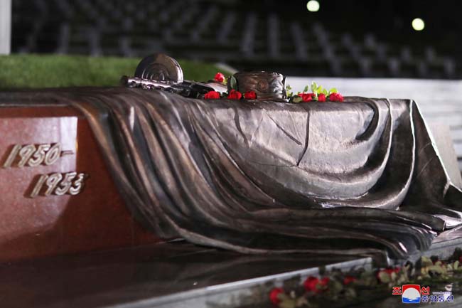金正恩委員長は苛烈極める戦争の砲火のなか、革命の貴い精神的遺産をもたらした1950年代の国の守護者の不滅の功績は歴史に末長く輝くだろうとし、烈士の英雄的闘争精神は社会主義朝鮮の永遠の魂に受け継がれるものとの確信を表しました。