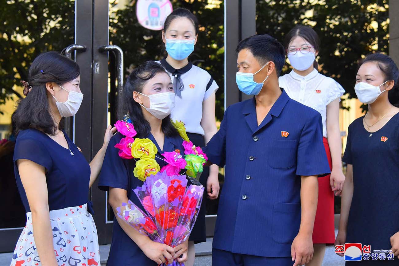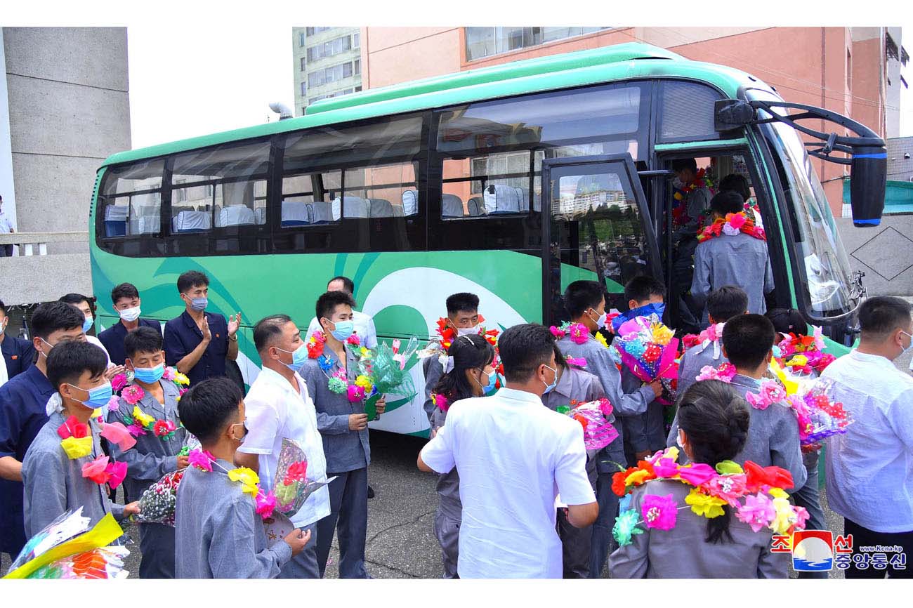 次いで、セポ地区に向かう青年たちに市内の青年同盟の活動家と青年が花束を持たせ、熱く見送りました。