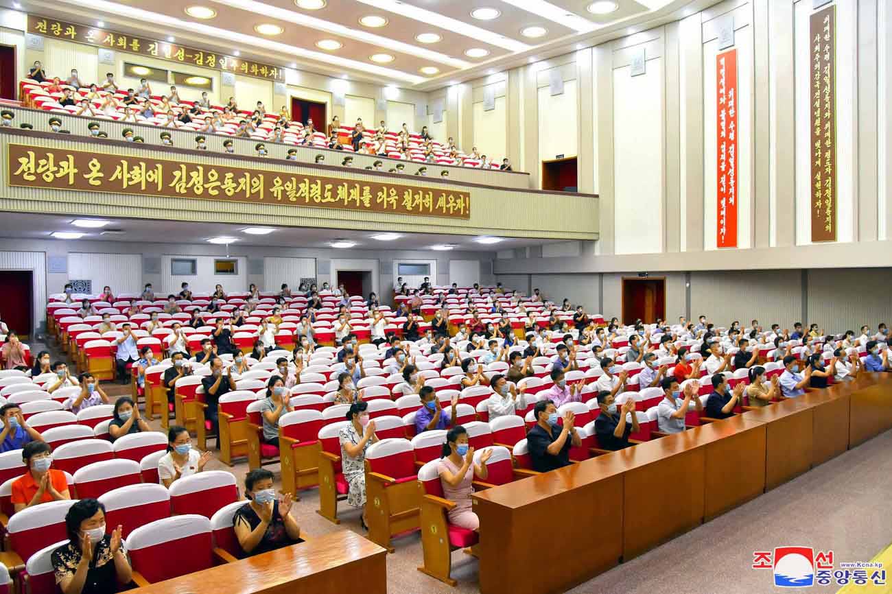 12日、ピョンヤンの中央労働者会館で、偉大な金日成主席が祖国解放の歴史的偉業を成し遂げた76周年を祝う労働者と職業同盟員の集いがありました。